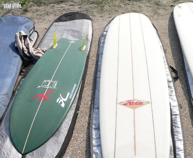 左のグリーンのボードが、HOBIE SURFBOARDS『CIRCA