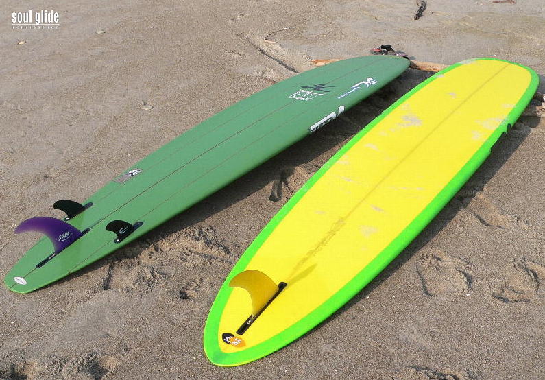 右のイエローのサーフボードが、神ガカリ的なノーズライディングから、