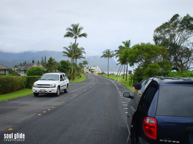 プリンスヴィルの北端ヘ向かう道。ハナレイ・ヘッドが見えてきます。