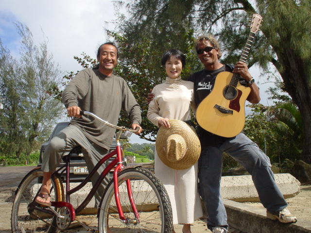 ← BACK TO INDEX NEXT PAGE → 日本No,1のビッグウェイバーであり、KI SURFBOARDS のオーナーシェイパーである櫛本氏(写真左)と、 カウアイ島のキングことレジェンド・サーファー・タイタス・キニマカ氏(写真右)。 ハナレイ・ベイ・ピアの入り口にて。