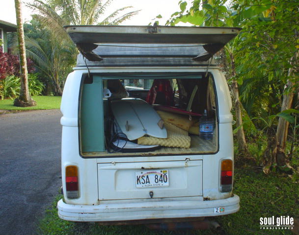 道路沿いの駐車スペースには、櫛本氏のワーゲン。開けっ放しの車内を覗くと、JOHN