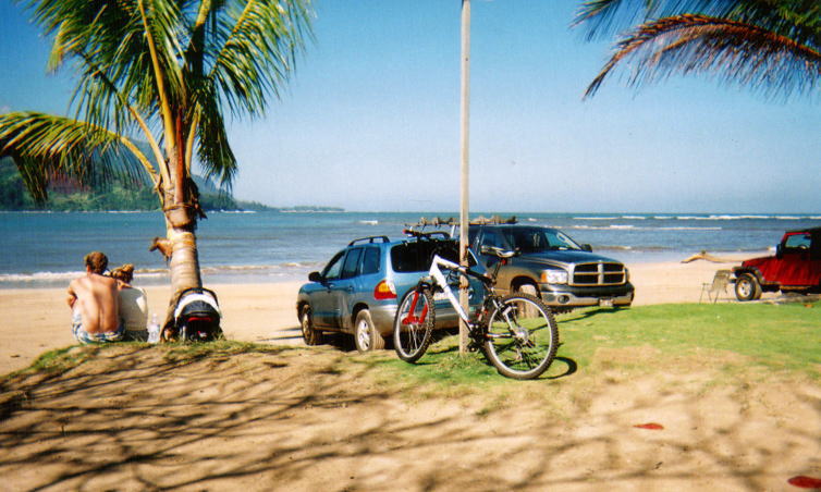トリップ5日目。晴天に恵まれたハナレイ・ベイ。週末とあり多くの人々で賑わっていました。