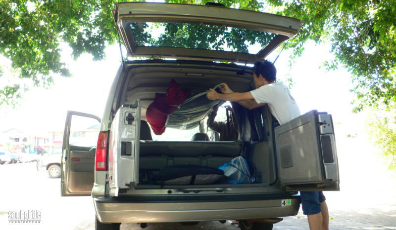 早速ビーチへ出かける準備を・・アストロってけっこう使える車ですね。