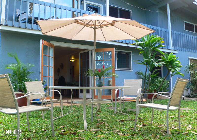 コンドミニアムの庭にて。