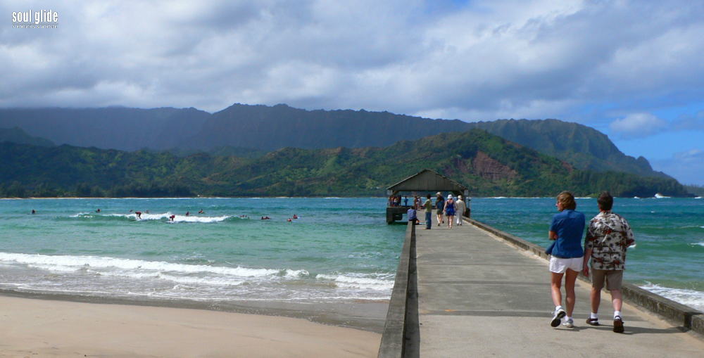 ハナレイ・ベイ・ビーチパークのピアにて。