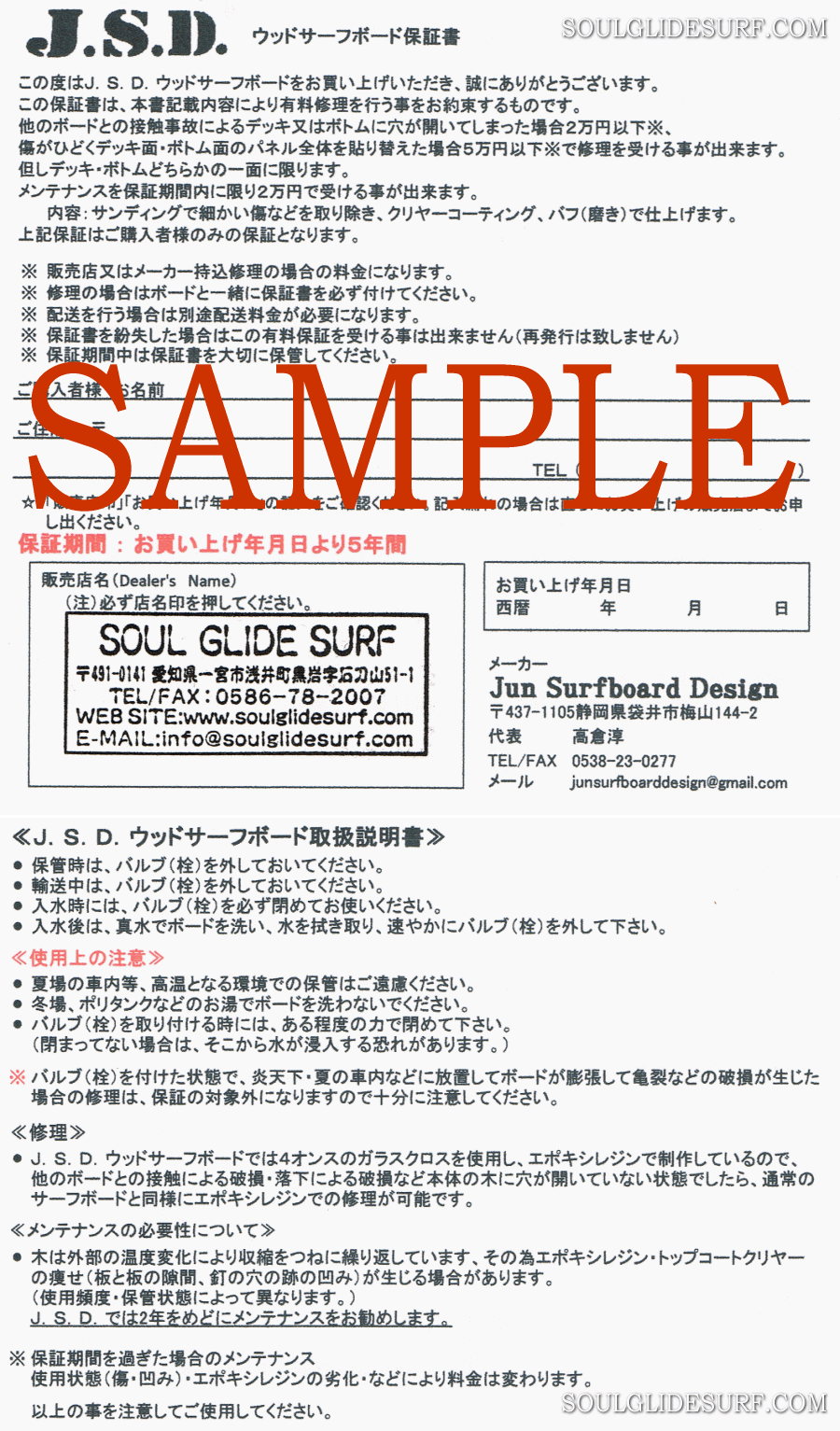 J.S.D.WOOD SURFBOARD メーカー保証&サポート
