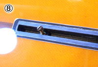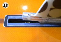![]() フィンの金具をスライドしつつ挿入。 入りにくい時は、フィンのベース部分を 紙やすりで少しづつ削って調整する |