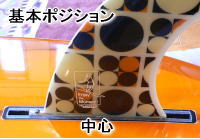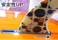 | ●フィンの取り付けポジションの調整 通常、サーフボードは、フィンボックスの中央にフィンをセットすることで本来の性能を発揮できるように設計されて おりますが、下の画像のように、フィンの取り付けポジションを移動させることによってサーフボードの旋回性や安 定性を調整することができます。波の状態や、ライディング・スタイルや、レベルや、好みによって、取り付けポジシ ョンを変えてみるのも良いでしょう。 |