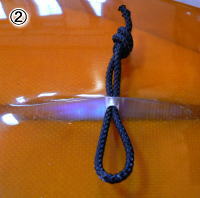 | ●RESIN LEESH LOOP へのリーシュコード用ヒモの取り付け方法 | |||