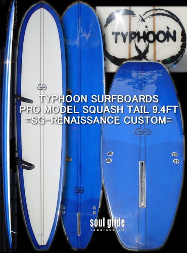 ■TYPHOON PRO MODEL SQUASH TAIL SINGLE FIN LENGTH: 9'0" - 9'6" 、 S-CLOTH: 6oz x 4oz x 6oz N: 18 1/2, W: 22 1/4, TAIL: 14 1/2, TH: 2 3/4 - 3" NOSE CONCAVE, TAIL V BOTTOM, DOWN RAIL, TAIL HARD EDGE, FULL COLOR ( TINT or PIGMENT ) & GLOSS + POLISH FINISH STRINGER: SINGLE、 SHAPER: CHRIS CHRISTENSON SG基本価格:\220,000〜 (全面カラーリング料金、デッキピンライン料金、フィン料金含む) (オプション料金はページの最下段を参照) |